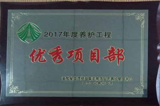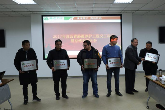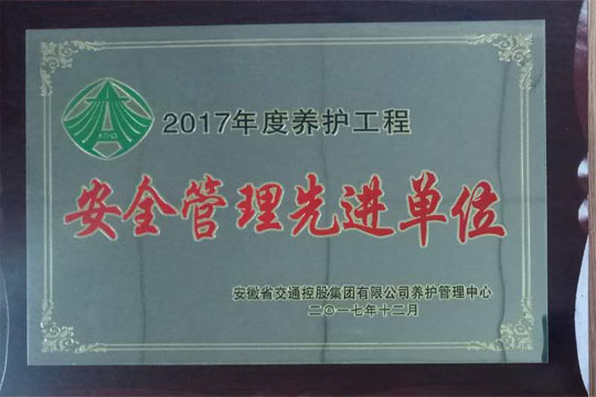 2017年12月14日,2017年度瀝青路面養(yǎng)護工程交工驗收暨總結(jié)表彰大會在合肥召開,六安市交通公路實業(yè)有限公司2017-2019年度安徽省部分高速公路瀝青路面專項養(yǎng)護工程03標項目經(jīng)理部榮獲2017年度養(yǎng)護工程”優(yōu)秀項目部“和”安全管理先進單位“稱號。